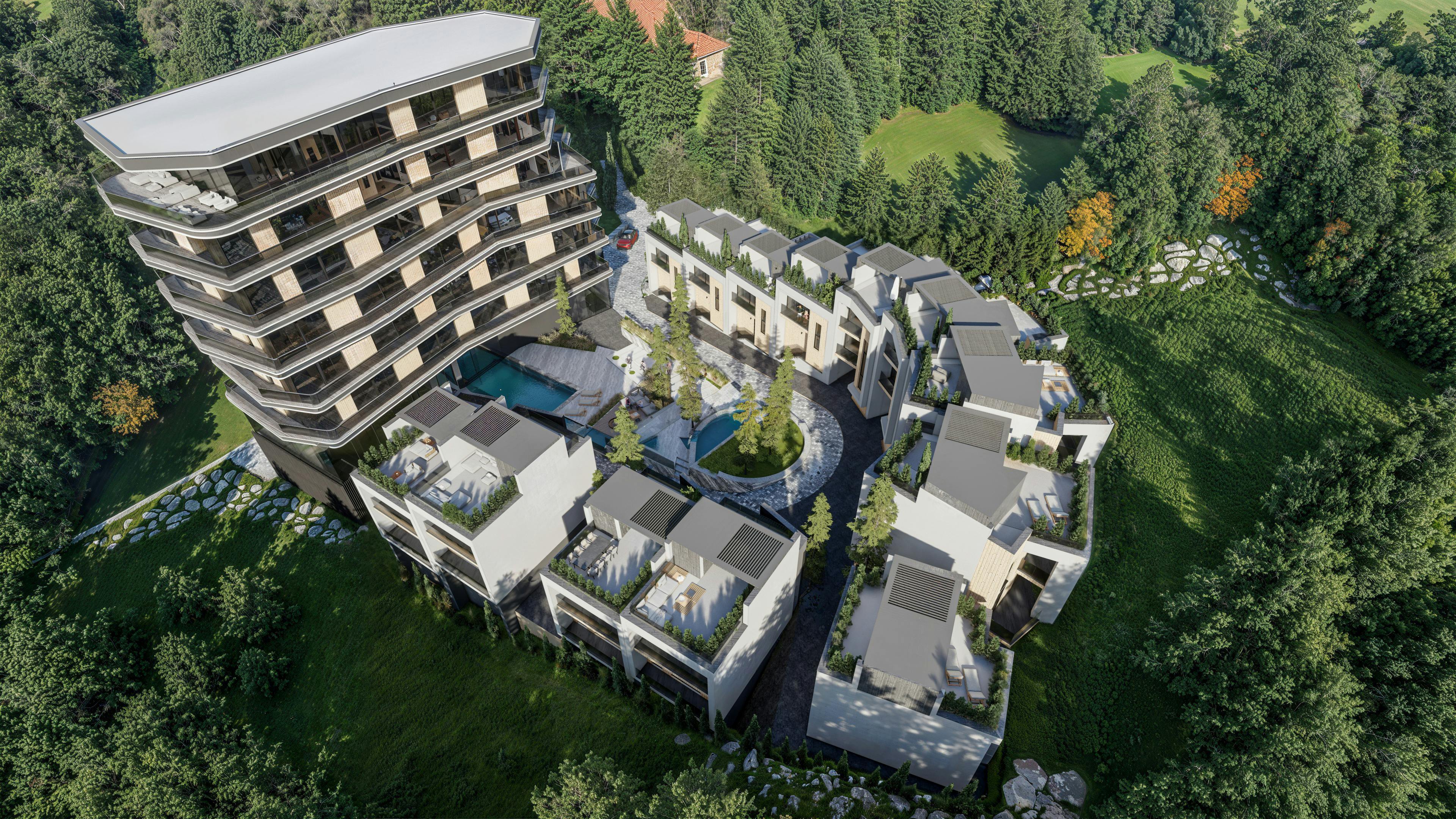🟢 Комфорт: басейни, SPA та зелена зона. Ресторан із панорамними залами. Зони масажу та спортивні кабінети. Приватні джакузі в зоні відпочинку.